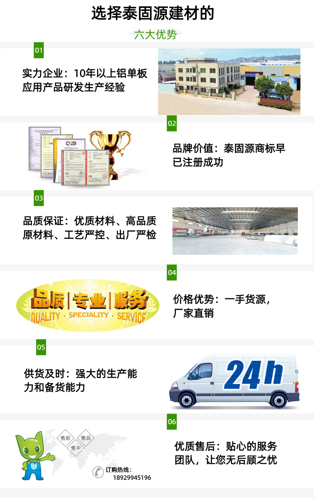 關(guān)于我們佛山市泰固源裝飾材料有限公司是一家研發(fā)、生產(chǎn)鋁單板和陶土板、航空板三大系列的大型企業(yè)。公司成立于二零一零年,鋁單板占地面積10000平米,陶土板占地面積300畝。擁有環(huán)境優(yōu)雅、寬敞、明亮的現(xiàn)代化標(biāo)準(zhǔn)廠房及辦公大樓。位于佛山市南海區(qū)里水勝利工業(yè)園,地理位置優(yōu)越。我司技術(shù)實(shí)力強(qiáng)大,生產(chǎn)管理科學(xué)嚴(yán)謹(jǐn)。它在引進(jìn)意大利生產(chǎn)設(shè)備的基礎(chǔ)上,立足于持續(xù)革新制造工藝,使各項(xiàng)技術(shù)指標(biāo)遠(yuǎn)遠(yuǎn)超出國(guó)家及行業(yè)標(biāo)準(zhǔn),跨入先進(jìn)水平行列,在經(jīng)濟(jì)和社會(huì)效益方面取得了巨大的成就。我司自主研發(fā)、生產(chǎn)泰固源鋁單板,泰固源陶土板這兩大系列產(chǎn)品,多年來(lái),經(jīng)過(guò)公司全體員工的通力協(xié)作,我們的品牌產(chǎn)品(泰固源,辛源牌)得到業(yè)內(nèi)人士一致認(rèn)可。銷售網(wǎng)點(diǎn)遍布國(guó)內(nèi),并與諸多國(guó)內(nèi)外客戶建立了長(zhǎng)期友好的合作關(guān)系,產(chǎn)品銷往國(guó)內(nèi)并走向世界